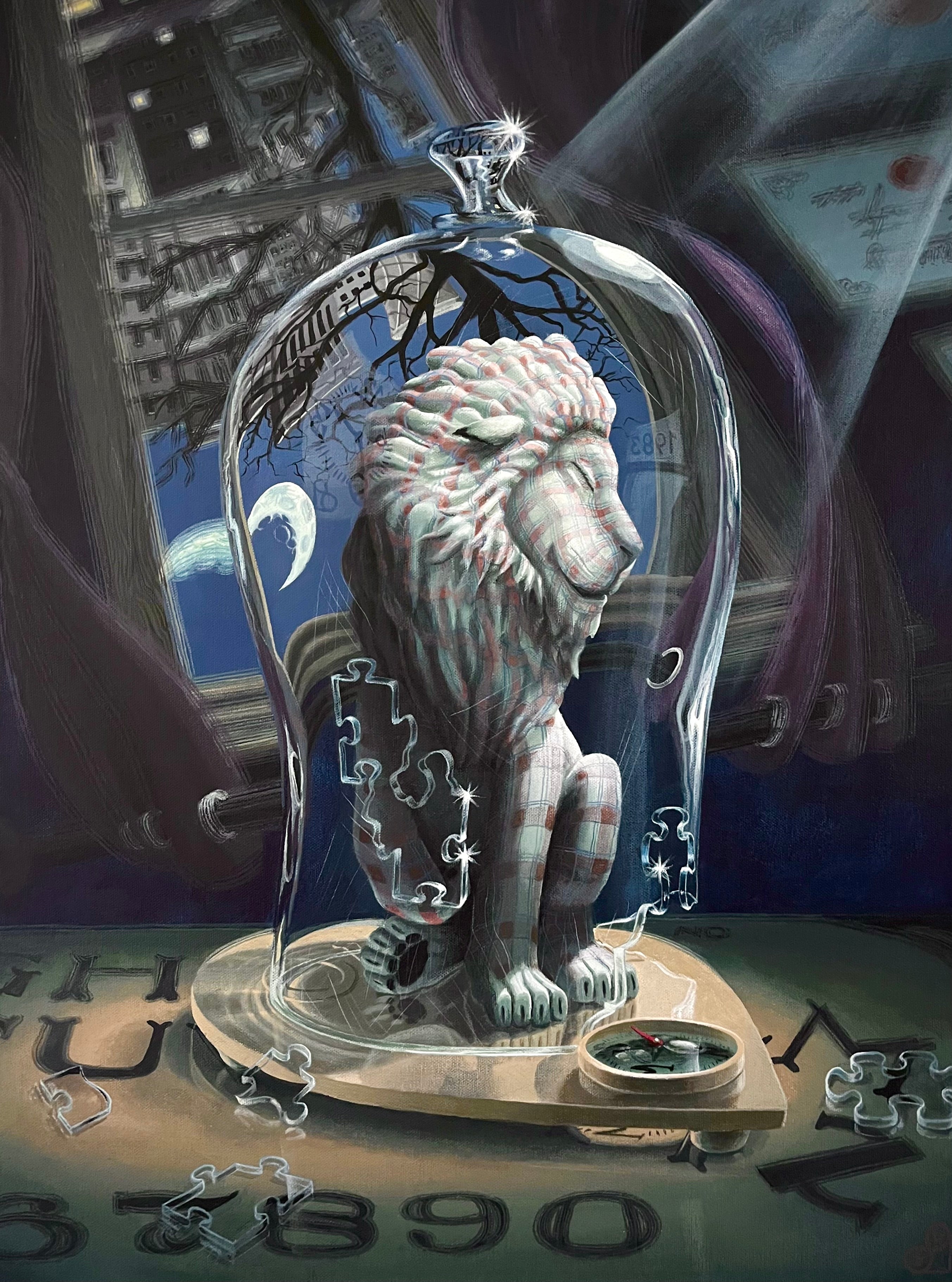 Gestation (Plaid Lion Under Cloche on Ouija Board)